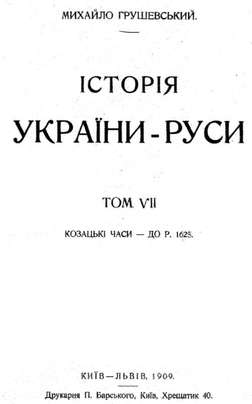 Title page of M. S. Hrushevsky's book "History of Ukraine-Rus" (7th volume, 1909). |