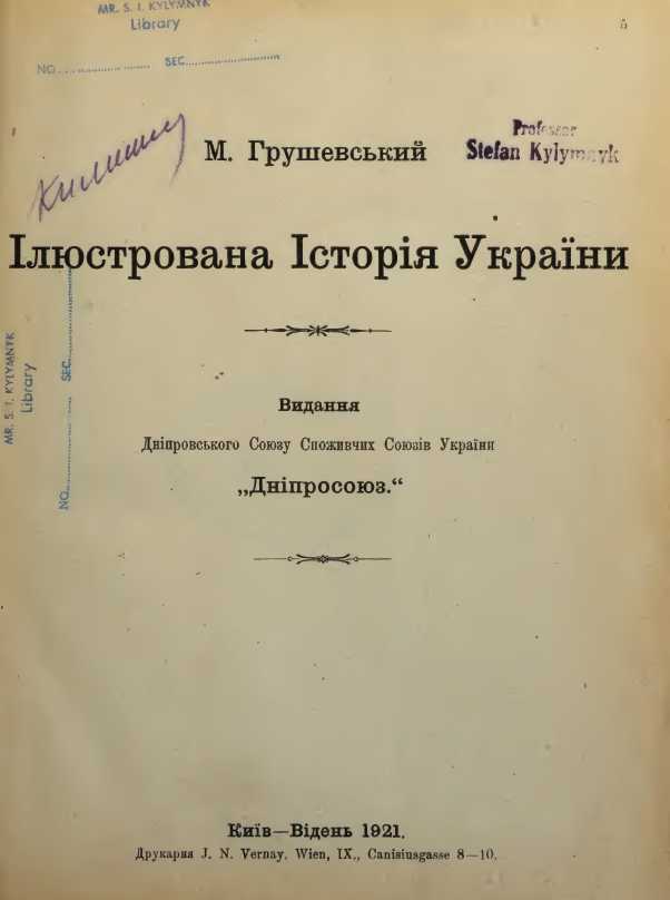 Title page of M. S. Hrushevsky's book "Illustrated history of Ukraine" (1921). |