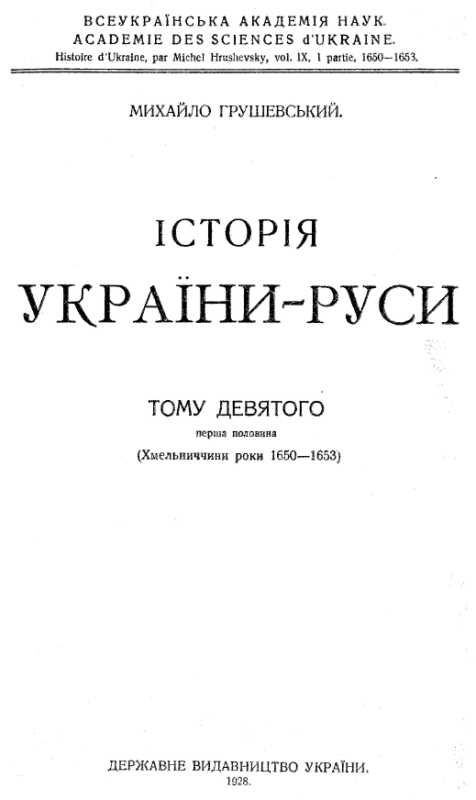 Title page of M. S. Hrushevsky's book "History of Ukraine-Rus" (9th volume, 1928). |