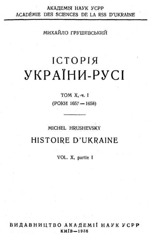Title page of M. S. Hrushevsky's book "History of Ukraine-Rus" (10th volume, 1936). |
