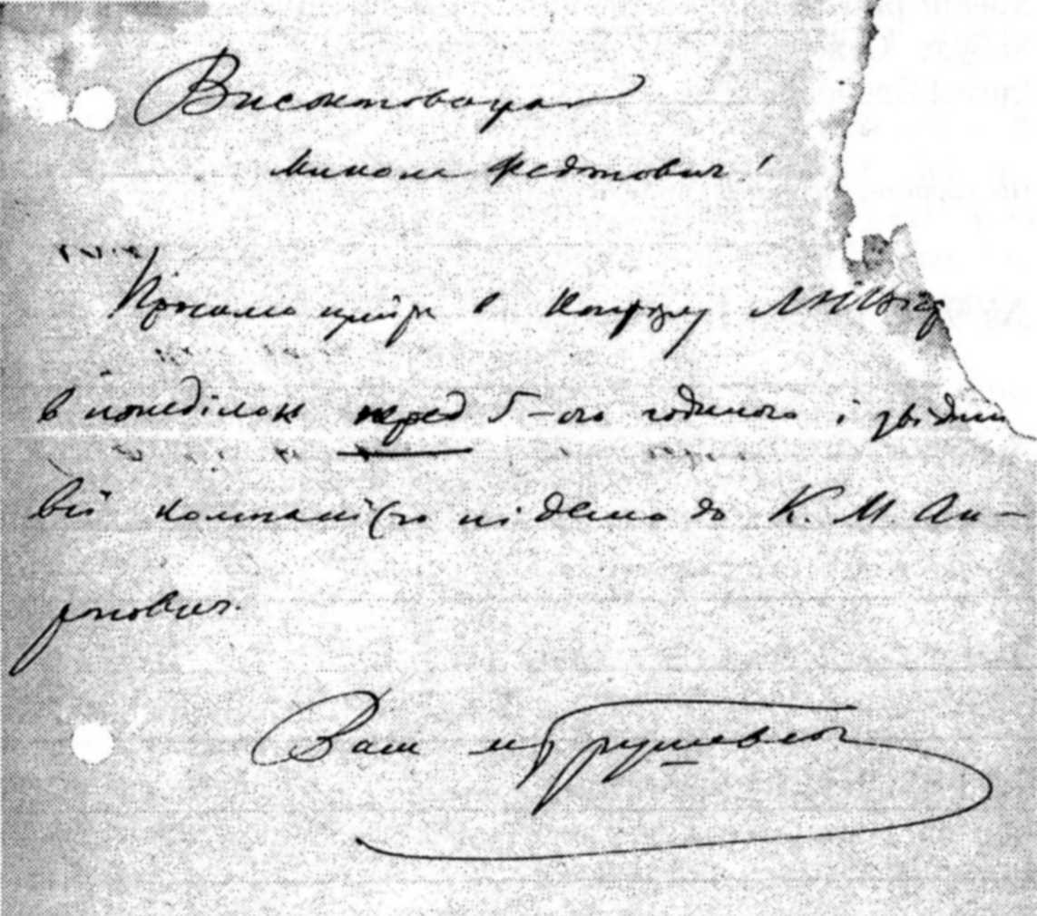 Letter to M.Bilyashivsky (1908)Autograph of M. S. Hrushevsky's letter to M.Bilyashivsky (1908) After publication: Correspondence of Mykhajlo Hrushevsky. – Kyiv: 2001, vol. 2, p. 77. |