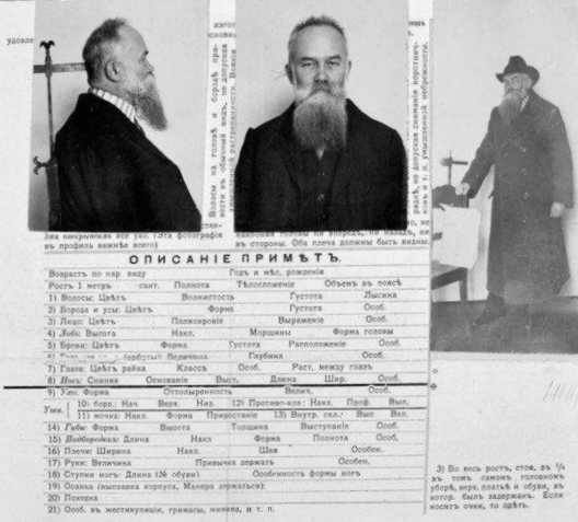Registration card with photos of M. S. Hrushevsky in the Kyiv Gendarmerie Department, end of 1914. |
