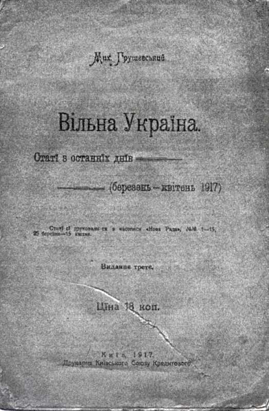 Обложка сборника статей М. С. Грушевского «Свободная Украина» (К.: 1917 г.) По изданию: Грушевский М.С. Сочинения: в 50 т. – Львов: Свит, 2002, т. 4, ч. 1, с. 2. |