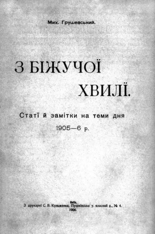 Титульный лист сборника статей М. С. Грушевского «Из текущего момента» (1906 г.)