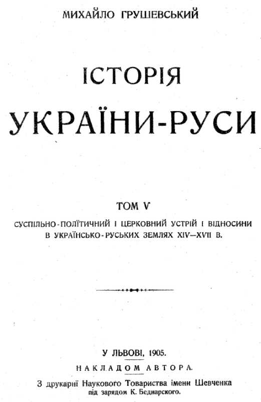 Титульний аркуш книги М. С. Грушевського «Історія України-Руси» (5-й том, 1905 р.). |