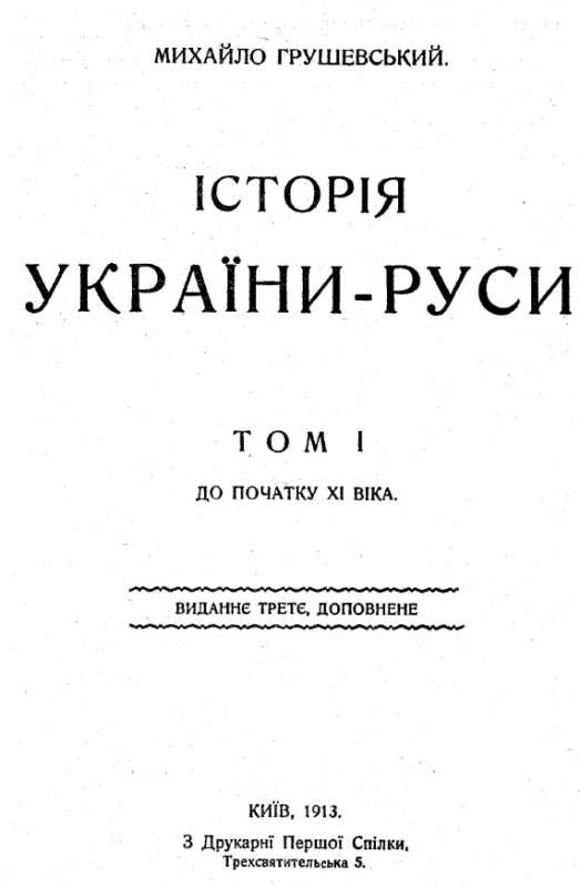 Титульний аркуш книги М. С. Грушевського «Історія України-Руси» (3-е видання 1-го тому, 1913 р.).