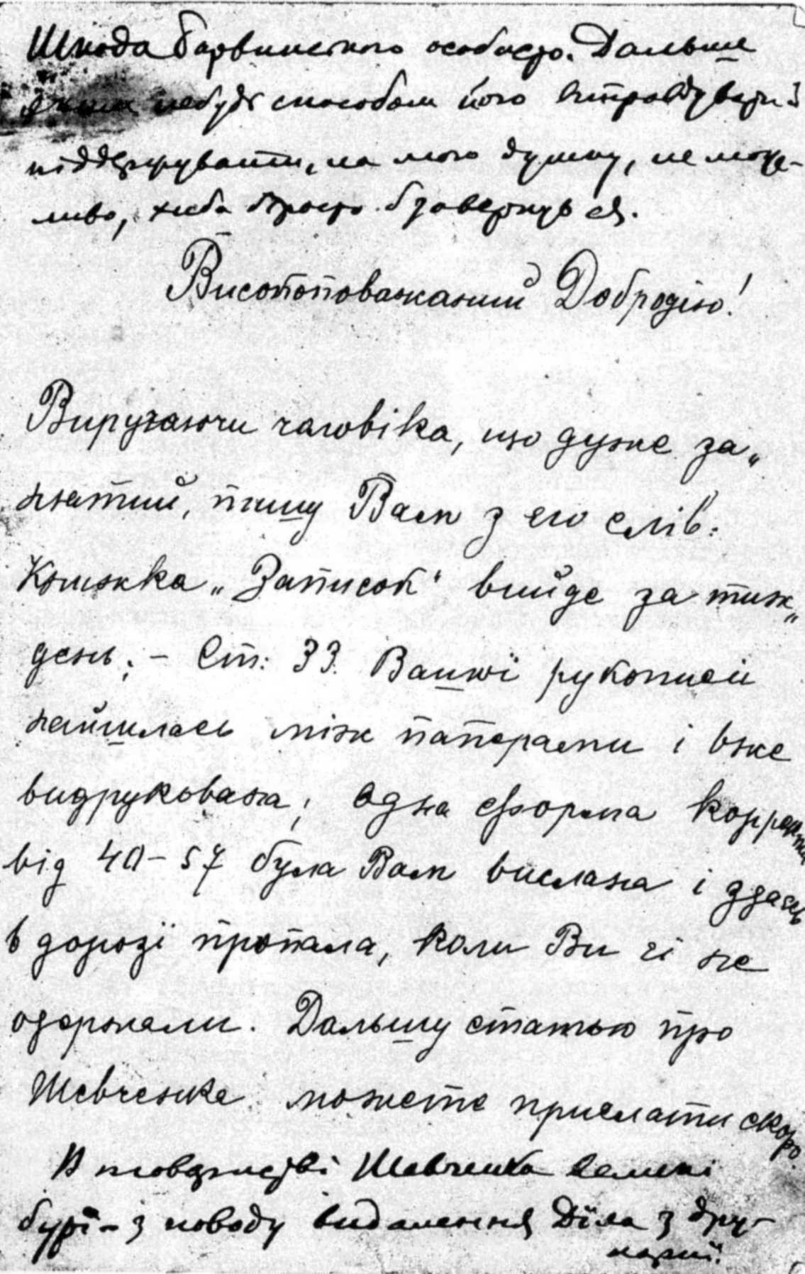 Подається за виданням: Листування Михайла Грушевського. – К.: 1997 р., т. 1, с. 59.