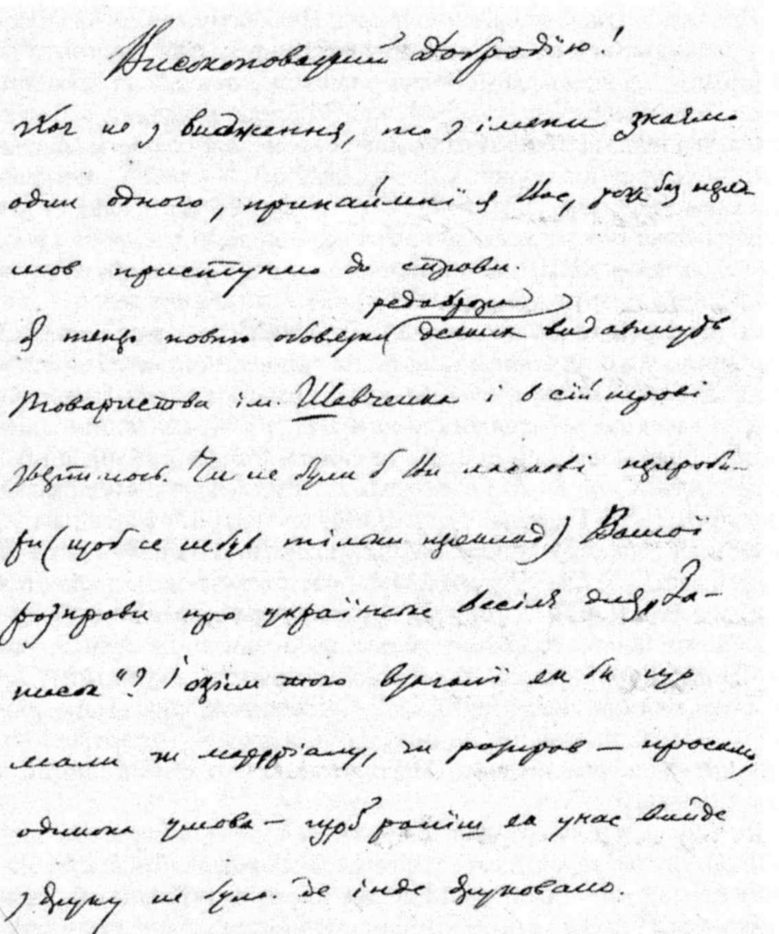 Перша сторінка автографа листа М. С. Грушевського до Ф.Вовка (першої половини 1895 р.)