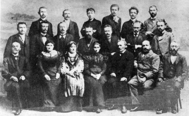 1-й ряд: Михайло Павлик, Євгенія Ярошинська, Наталя Кобринська, Ольга Кобилянська, Сильвестр Лепкий, Андрій Чайковський, Кость Паньківський.