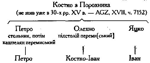 Насамперед щодо Порохницьких. Родинна традиція уважала їх простими, в мужеськім коліні потомками Бибельських. Але потомками Ходка Бибельського вони, правдоподібно, не були. Генеалогія їх старших поколінь по актам XV в. представляється так: