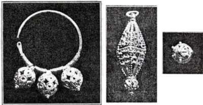 На закінчення піднесу, що в сучаснім кавказькім золотництві можна знайти й більше паралель для нашої старої штуки. От хоч би той осетинський ґудзик – чи не пригадує він нам (відкинувши головку) київських ґудзиків (щоправда – далеко простіших) з нахідки 1880 р. (Кондаков, Op. c[it]., таб. II), або ще більше – ґудзиків рязанського скарбу 1822 p., де боки ґудзика вже заповнені, як і на сім кавказькім, філіґрановими звитками, щоправда, звитками – більш штучними, ніж більш примітивний рисунок кавказького ґудзика.