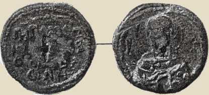 себто Kωνσταντίνος έλέω Θεο? [Властиво, край букви скорше вказував на Т, ніж на Θ.] μητροπολίτης πάσης ‘Ρωσίας. З другого боку образ Божої Матері (патронки київської катедри) на троні з Христом на руках, сильно знищений двома гострими штрихами; поли ризи спадають на поручні трону, хітон сильно і схематично сфалдований, на чолі примітний хрестик, на ризі (на копії, відбивши світно, вийшов він ясною плямкою), лиця знищені; коло німба MP (знищено) ΘR. Належить ся печатка Звенигородській церкві. Була мною вже опублікована в XXII т. «Записок» (Miscellanea).